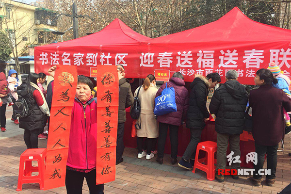 书法名家进社区送春联,共送出300副对联。