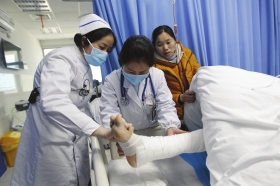 去年12月底,正在大专学校就读的何群从宿舍起床时,住在上铺的他不慎扭伤右踝关节。之后,家长将他送到一家骨伤科医院进行治疗。“他们给我儿子打了夹板,里面敷了些中草药。”