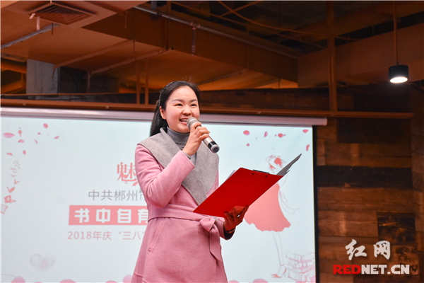 通过朗读者深情或激昂的展现,使在场观众备受鼓舞,掌声不断。她们借文寓情,用诗歌赞美女性,歌颂母爱,表达对子女的希望,激励女性活出自我,活出精彩。一本书,一首诗,一张笑脸,一段分享朗读乐趣的美好时光,在第108个三·八国际妇女节,郴州市委宣传部的女干部职工们欢聚在属于她们的“特殊”聚会。