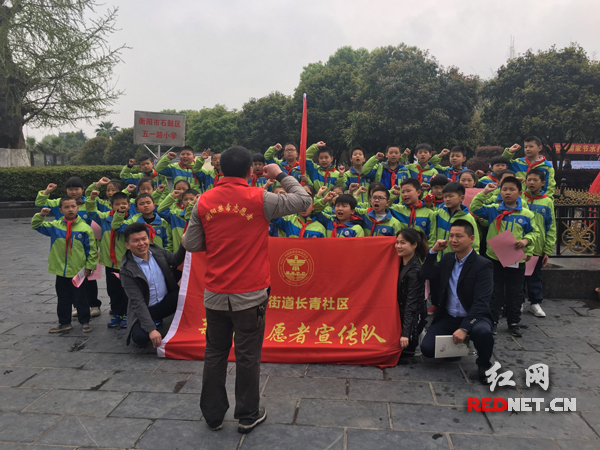 衡阳市石鼓区潇湘街道长青社区组织禁毒志愿者率领近百名小学生在石鼓广场宣誓。
