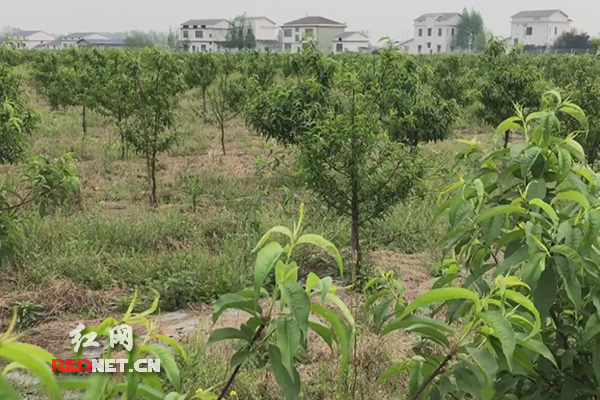 华南农业的黄桃林,果树下面,村民们已经开始准备养鸡了。