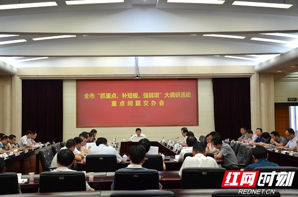 会议回顾了前段“抓重点、补短板、强弱项”大调研活动开展情况,全市大调研活动开展以来,各地各单位高度重视、迅速行动、严格要求、扎实推进。本次大调研活动以“抓重点、补短板、强弱项”为主题,突出查找、解决地方发展中存在的突出问题。大调研活动聚焦在贯彻落实党的十九大精神、省委创新引领开放崛起战略和市委开放强市产业立市战略等方面出现的十大类问题,分为调研实施、问题梳理、破解难题、总结完善四个实施阶段,目前已经进入第三阶段。