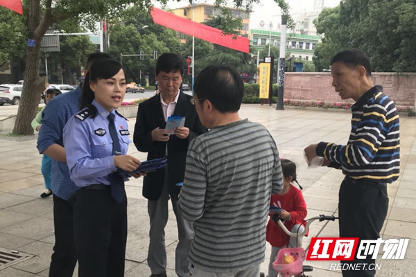 民警走上街头发放资料。