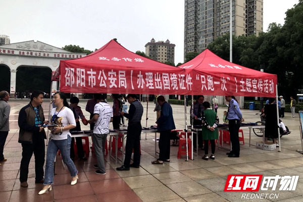 邵阳市公安局在城南公园开展办理出国境证件“只跑一次”主题宣传活动。