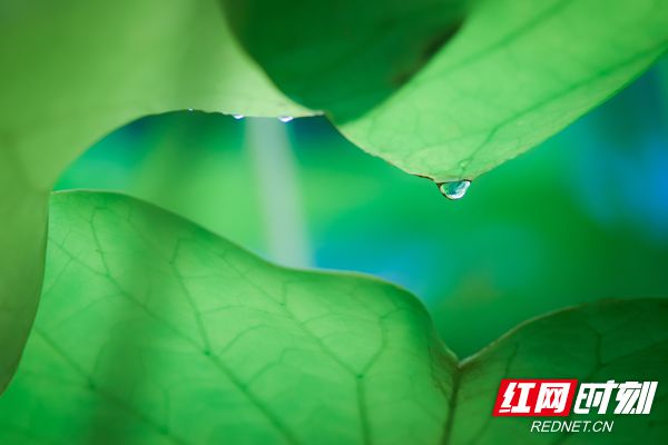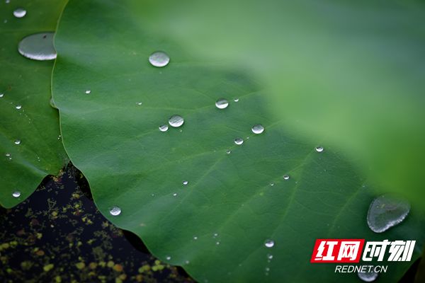红网时刻7月2日讯(记者 黄滔)7月1日,经历了一个星期高温酷热的湘潭,终于迎来了久违的雨水。湘潭市盘龙大观园荷花园内,夏荷初开。清凉的雨水落在碧绿的荷叶上,蹦跳、翻滚着,恰似“大珠小珠落玉盘”。不时有风吹过,荷塘中摇曳一片。叶中的水珠便又乘着风,从这片荷叶滚到下一片荷叶,最后带着清香,落入水中,泛起圈圈涟漪。