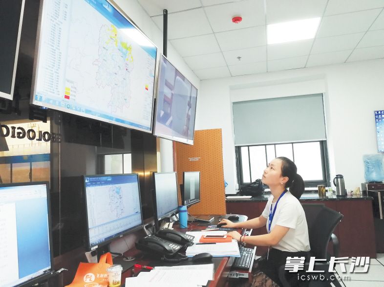 工作人员正在对地理信息及相关数据进行监测。长沙晚报记者 小刘军 摄