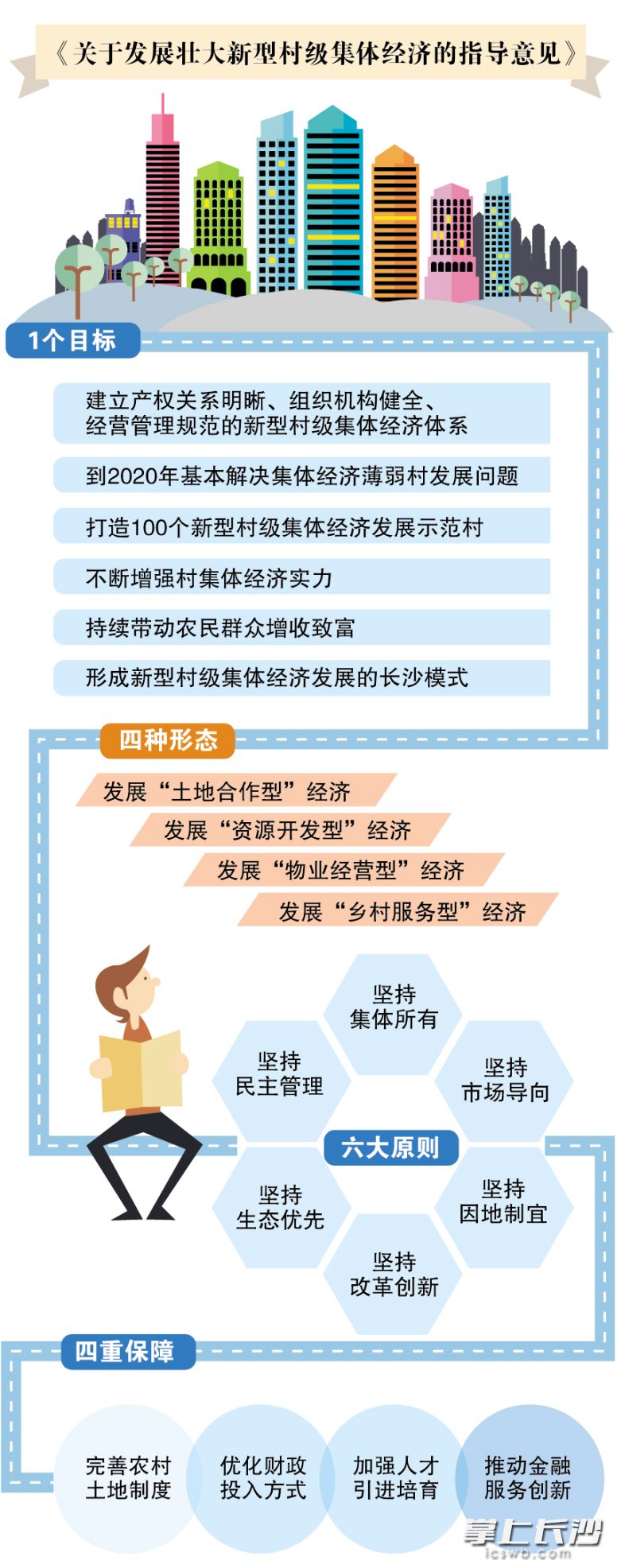 结合长沙实际,意见提出,重点发展土地合作型、资源开发型、物业经营型、乡村服务型四类新型村级集体经济。