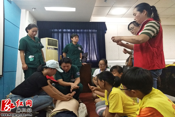 随后,麻阳县人民医院工作人员详细地讲解了“溺水致死原因与症状”。发生溺水致死的原因主要是气管内吸入大量的水阻碍呼吸,或因喉头强烈痉挛,引起呼吸道关闭、窒息死亡。现场还模拟演示了意外发生溺水人员自救与抢救方法,孩子们和家长轮流上台向医护人员学习溺水抢救方式方法。