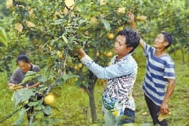 他用左手,和父亲一起,起早贪黑地干,硬是在长了很多杂木和毛竹的山上开垦出一片10余亩的果园。初获成功后,他又通过用自家的良田换、流转荒山等方式,不断扩大面积,就连一些石头山,都被他开发成了果园。目前,他的果园已发展到170余亩,成林挂果的近100亩。园里种有梨、桃、李、西瓜等20多个品种的水果。一年里有半年时间都出产水果。