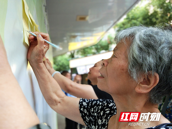 76岁的黄奶奶在追思墙上写上对亲人的思念。
