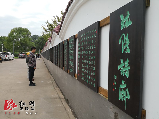 “沅陵诗廊”由本地书法协会会员免费书写、篆刻,集行、隶、篆、草等字体于一墙,显示出沅陵书法家的实力,展示出沅陵深厚的文化底蕴。