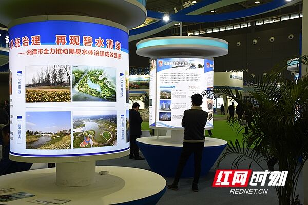 在众多展厅中,“伟人故里 大美湘潭”展厅紧扣“人文住建、智慧住建、绿色住建、平安住建、品质住建、廉洁住建”六个住建理念,全面展示湘潭市城市建设与乡村振兴新成就,重点分版块展现了黑臭水体治理成果、十大特色小镇概况、市建筑设计院和规划设计院的BIM技术等城市建设成就和新技术。