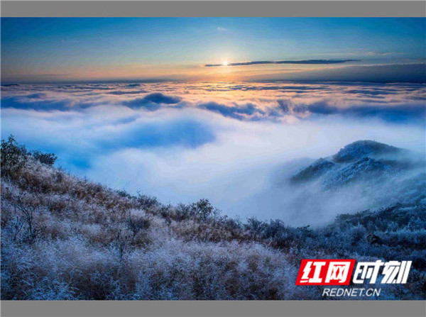 郴州市苏仙区五盖山“冰雪云海”奇观。廖文雄 摄