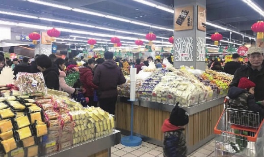 1月31日上午10时左右,家住长沙浏城桥附近的黄阿姨特地与老伴一起,带上小孙子搭了几站公交车前往该店添置年货。在该店内,三湘都市报记者看到,超市入口处可供取用的购物车已所剩无几,店内各个货柜前都挤满了前来选购商品的消费者。