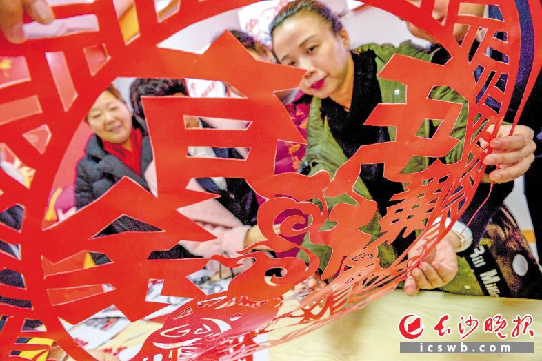 今日是大年三十。在春节来临之际,在天心区八角亭社区,剪纸达人周莉带着居民剪窗花。长沙晚报全媒体记者 陈飞 摄