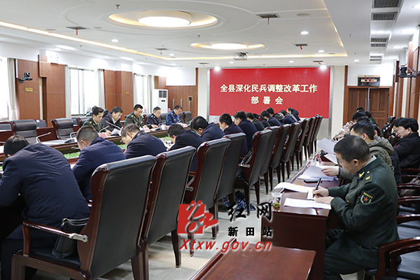红网时刻永州2月21日讯(新田分站记者 钟伟锋)2月20日,新田县召开深化民兵调整改革工作部署会,贯彻党在新形势下的强军目标,部署2019年民兵整组、兵役登记及大学生征兵宣传等工作。新田县委常委、常务副县长王名扬,县委常委王四海等县领导出席会议。