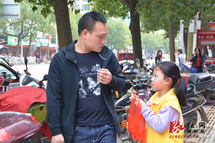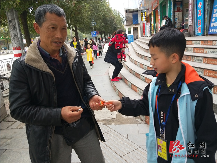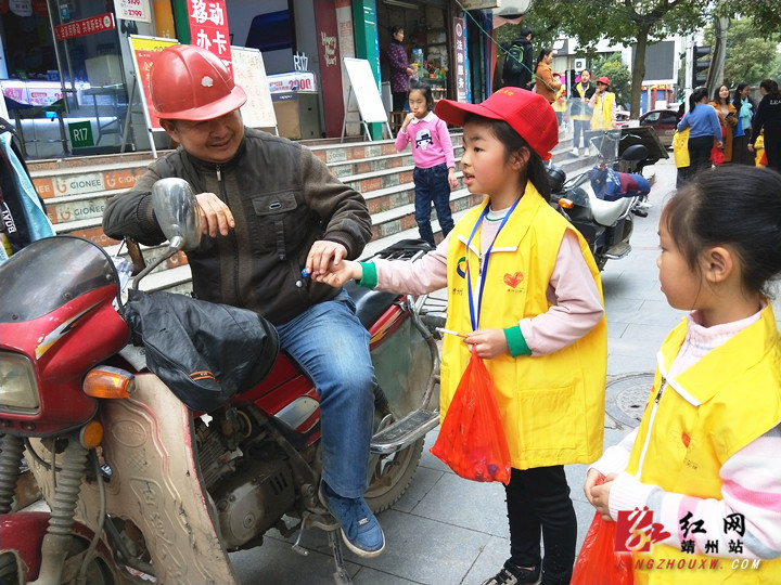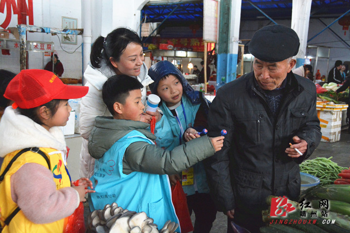 在汽车站路段,公益小天使开始“甜蜜”禁烟行动。陈俊名 摄
