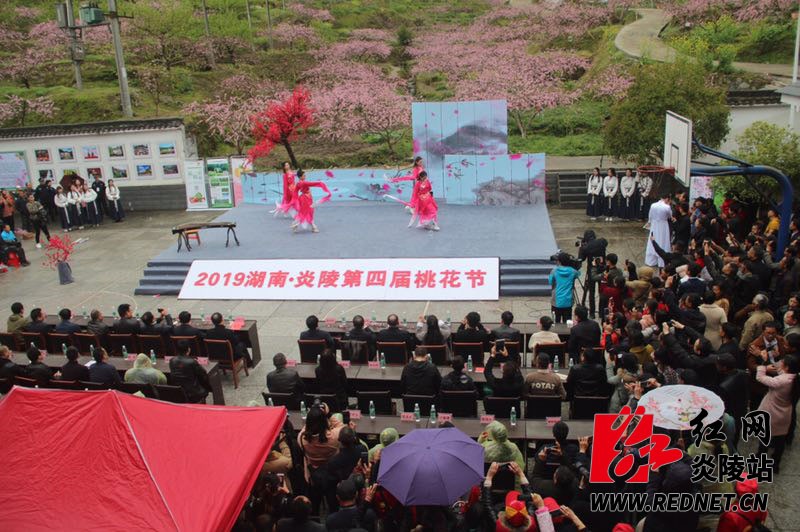 文艺表演后,文专文代表炎陵县委、县政府致欢迎词,随后,黄诗燕宣布湖南炎陵第四届桃花节正式开幕。霎时,欢呼阵阵,喝彩不断。