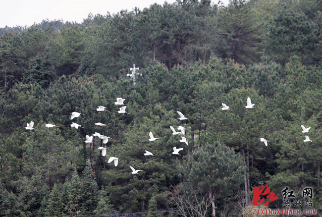 红网时刻3月27日讯(资兴站记者 朱孝荣)3月26日,成群的白鹭在东江湖畔的湖南省资兴市白廊镇台前村(资兴市水产良种场)嬉戏飞翔。近年来,资兴市强力推进生态文明建设,加大东江湖水环境和湿地保护,并加强珍稀鸟类保护工作,湖区生态环境越来越好,吸引着越来越多的鸟类前来栖息筑巢。