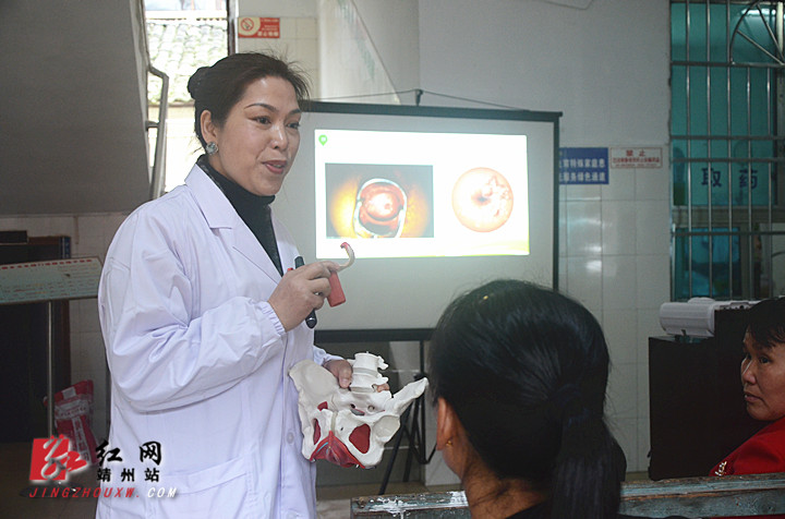 医务人员借助PPT和模具向在场妇女们普及“两癌”常识。周悦伊 摄
