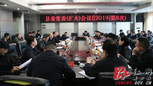 城步2019年第8次县委常委(扩大)会议现场。