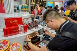 现场观众对活字黑茶表现出极大的兴趣,纷纷驻足观看、拍照。