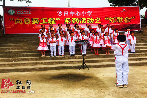红网时刻5月25日讯(通讯员 蒋晓国 朱任芝 唐联欧) 5月23日下午,湖南省道县沙田中心小学的孩子们在学校操场上参加了“童心向党,唱响校园”建制班红歌大合唱比赛活动。652名学生人人参与,充分体现了以人为本,一切为了学生发展的理念。