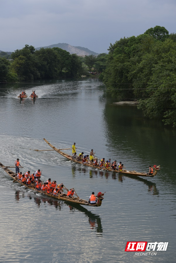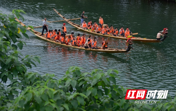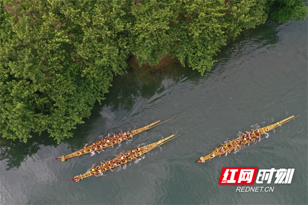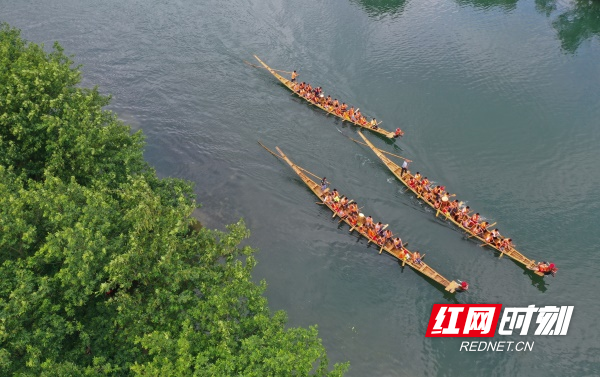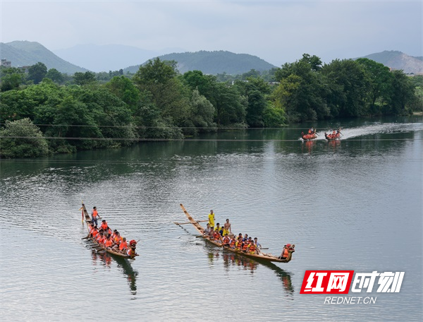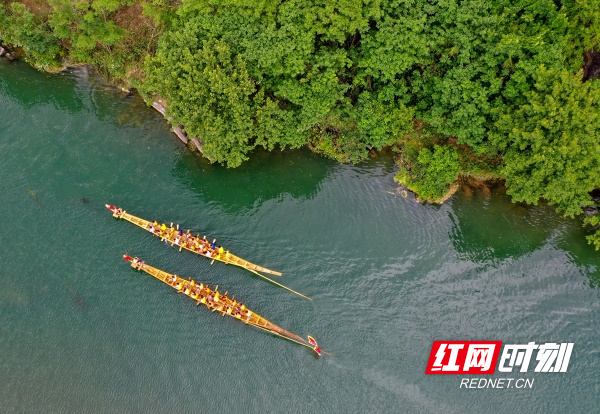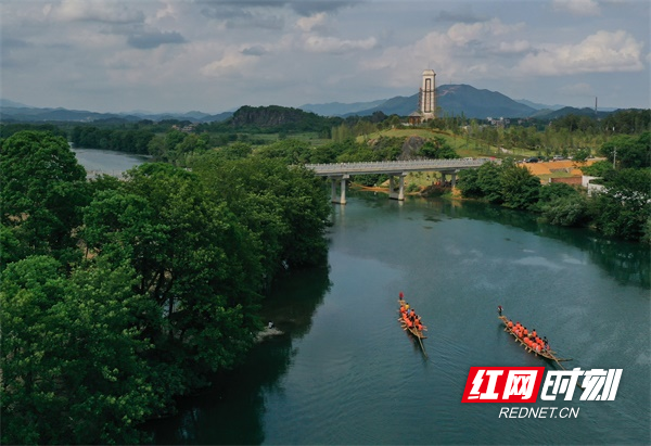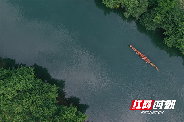 红网时刻5月27日讯(通讯员 蒋克青 雷伙生)5月26日,道县洑水河梅花贵头段,村民在岸青水碧的河面上划龙舟。近年来,道县坚持以生态立县,实施退耕还林、封山育林、水土保持、矿山植被修复等生态工程,不断扩大森林面积,提高水源涵养能力,全县生态持续向好,呈现出“河清、岸绿、景美”的生态景观。