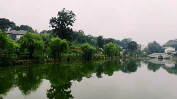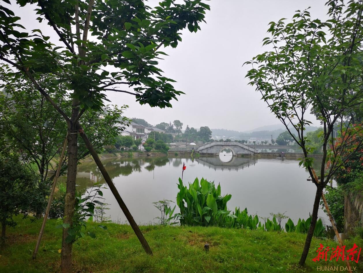 水清清,雨蒙蒙。一座小桥安静伫立在水塘中央,四周,白墙青瓦、红花绿草倒影水中。空气中是初夏草木生长的味道,甚至还夹杂着农家飘来的淡淡酒香。