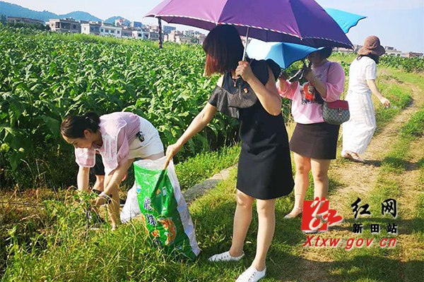 一大早,大家拿着垃圾钳,提着塑料袋,沿机耕道捡拾零星散落在田埂上的白色垃圾,并沿农田逐块检查,清检农药瓶、农资包装袋、地膜等农业生产废弃物,同时向劳作中的群众宣传田园环境整治的重要性,引导、发动群众参与到日常整治行动中来,共同努力改变田园“脏、乱、差”现象,打造设施完善、生产清洁、布局合理、产业融合的美丽田园,走出一条具有新田特色的美丽农业发展之路。
