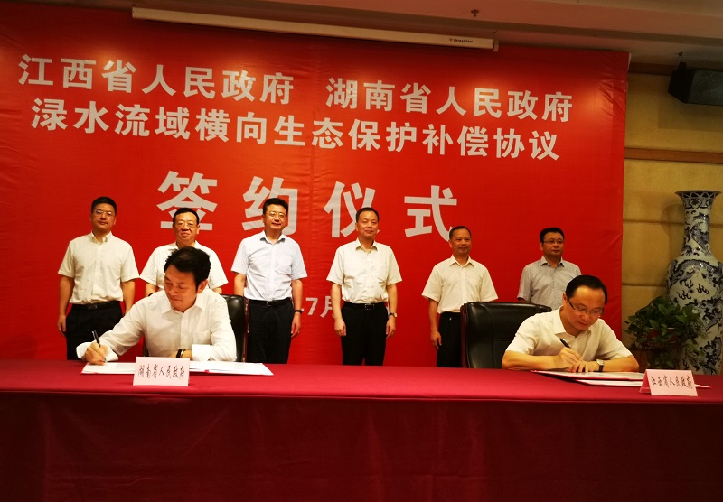7月25日,湘赣两省政府在萍乡市签订《渌水流域横向生态保护补偿协议》,双方本着互惠互利、共同合作的原则,在渌水流域建立横向生态保护补偿机制,加强流域水环境联防共治,促进渌水流域水环境持续改善向好。这是湘赣两省深入贯彻落实党的十九大精神和习近平生态文明思想的有力之举,是开展“不忘初心、牢记使命”主题教育的实际行动,是落实湖南省委副书记、省长许达哲,江西省委副书记、省长易炼红在推进湘赣边区域合作示范区建设联席会议上部署事项的重要任务。