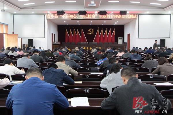 测试地点设安乡县委党校大会议室和多媒体会议室,考试分为两场,每场半个小时,测试内容涵盖习近平新时代中国特色社会主义思想、党的十九大精神和主题教育相关知识点。测试现场,全体党员干部专心致志进行了答题,会场纪律严肃。通过测试,有效检验了全体党员干部的学习成效,推动了理论学习往深里走、往心里走、往实里走。