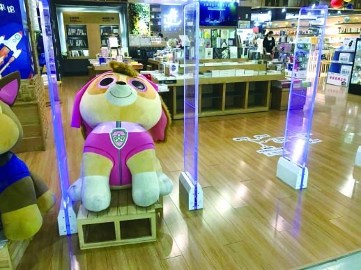 12月11日,在弘道书店河马公园店内,有不少受到儿童喜爱的小商品出售。小图为店外摆放的玩偶。