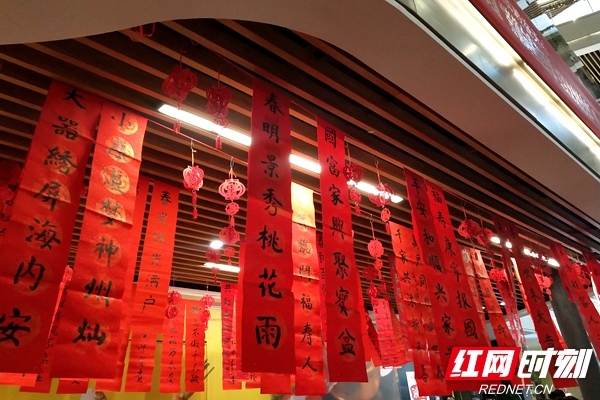 现场挂满了一幅幅蕴含吉祥如意的春联,增添了浓郁的节日氛围。