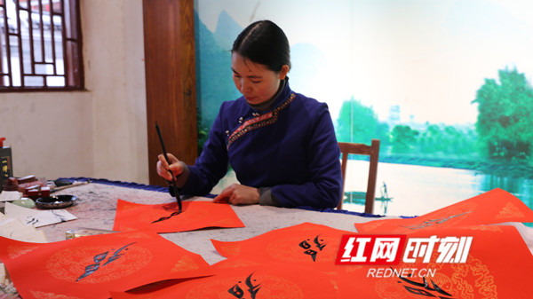 今年32岁的胡欣是江永县最年轻的女书传人,精通女书、女工、以及女书习俗。“最近几年,每到农历腊月,我都会在微信朋友圈发‘接福字’和春联的消息,免费为喜欢女书文字的人送‘福’和‘女书廉对联’”,胡欣说,今年元月到现在,已陆续送出了‘福’字700多张,春联500多对。加上其他几位女书传人送的春联,共为基层群众送出春联、福字5000余件。
