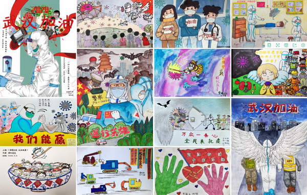 湖南省未成年人“童心共绘·抗击疫情”书画作品征集活动部分绘画作品。图片来源:湖南文明网