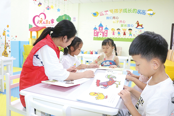 7月20日,浏阳市关口街道长兴社区公益暑期班正式开班,志愿者正在为小朋友们讲课。图片来源:浏阳日报(浏阳市文明办供图)