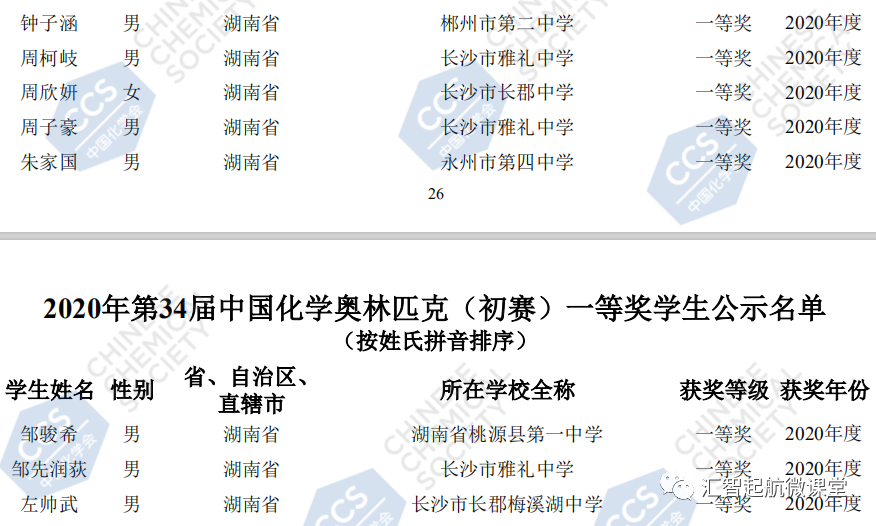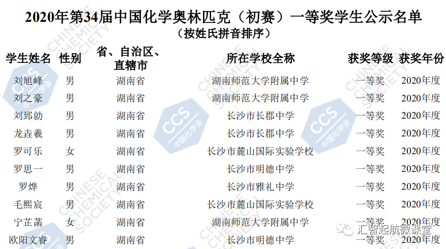 一起来看看湖南各中学入围一等奖的学生大名单↓↓↓