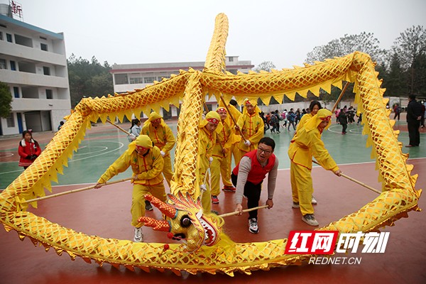 自“衡阳市百千万艺术童伴一一留守儿童关爱工程”实施以来,该校校长易智勇又点燃了重新组队的念头,经与帮扶支教单位湖南财经工业职业技术学院商议,由衡山新场市九年一贯制学校重新组建一支儿童舞龙队,由湖南财经工业职业技术学院组建一支舞龙支教队,带着孩子们一起把曾经的“中华龙”重新舞起来。