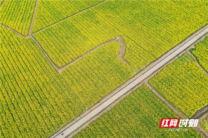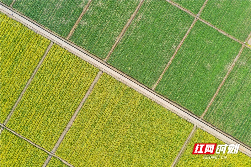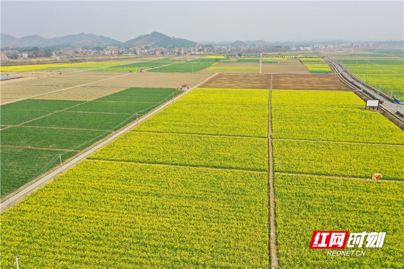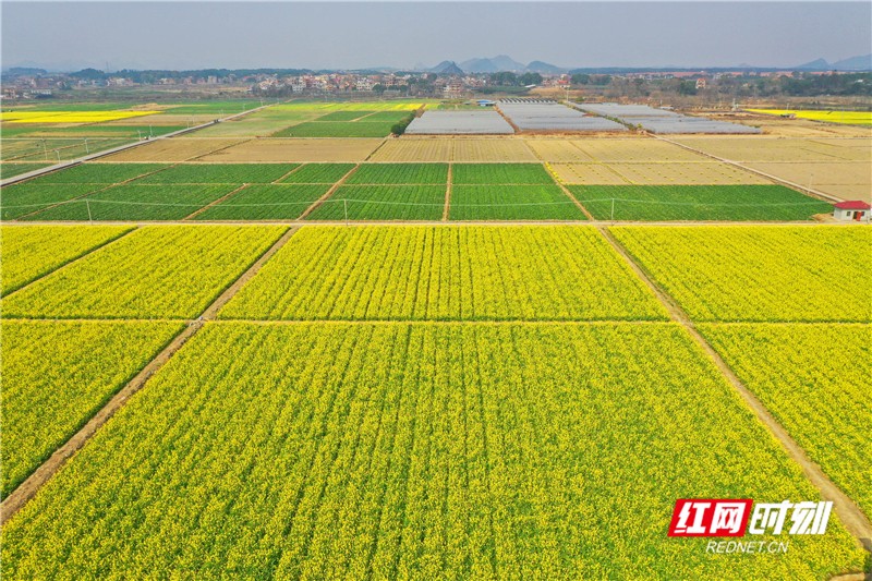 立春至,湖南省永州市道县濂溪蔬菜基地菜花盛开,遍地金黄,春意盎然。该蔬菜基地每年轮作种植面积近万亩,产品供应粤港澳大湾区。(通讯员 何红福)