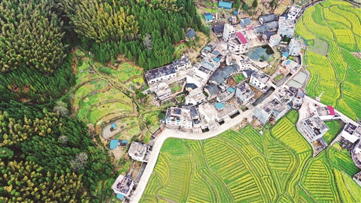 3月2日,新田县金陵镇千马坪村,数百亩油菜花竞相盛开,犹如大地铺金。近年,该村依托万亩竹海发展竹木加工和乡村休闲旅游产业,2020年2月顺利实现整村脱贫。目前,该村已成为“网红打卡地”,吸引众多游客慕名前来观光休闲。刘贵雄 摄