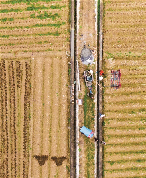 2月24日,嘉禾县普满乡板贝村,村民在修缮灌溉渠道。时下正是春耕备播季节,该县农民抢抓晴好天气,对耕道水渠进行修缮加固,为春耕作准备。欧阳常海 摄