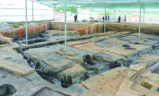 10月9日,鸡叫城遗址考古发掘现场巨大的木结构建筑基础呈现在人们面前时,令现场专家叹为观止。