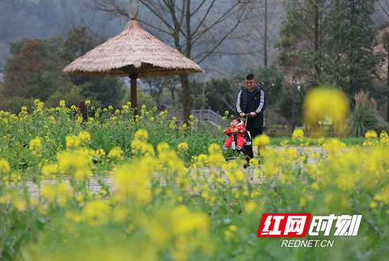 红网时刻张家界3月3日讯(记者廖秋萍 通讯员吴勇兵)早春三月,湖南张家界市武陵源区黄龙洞景区生态广场的油菜花竞相绽放,吸引人们前去踏青赏花。
