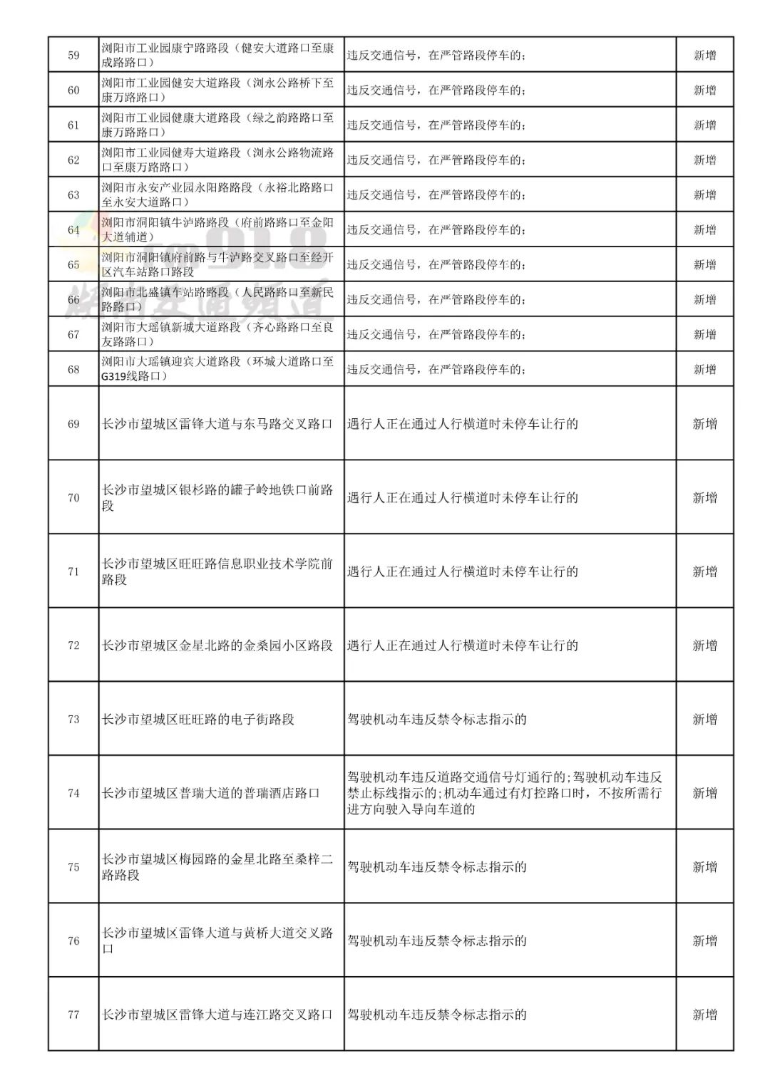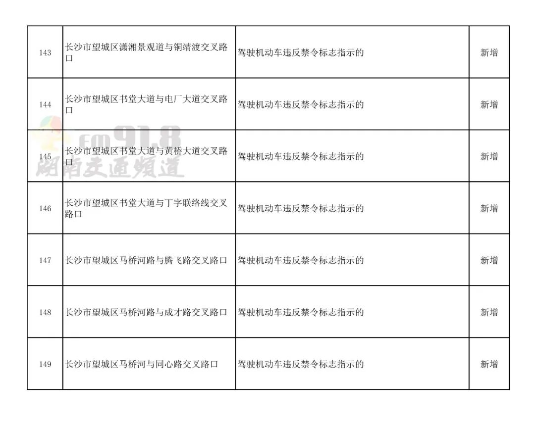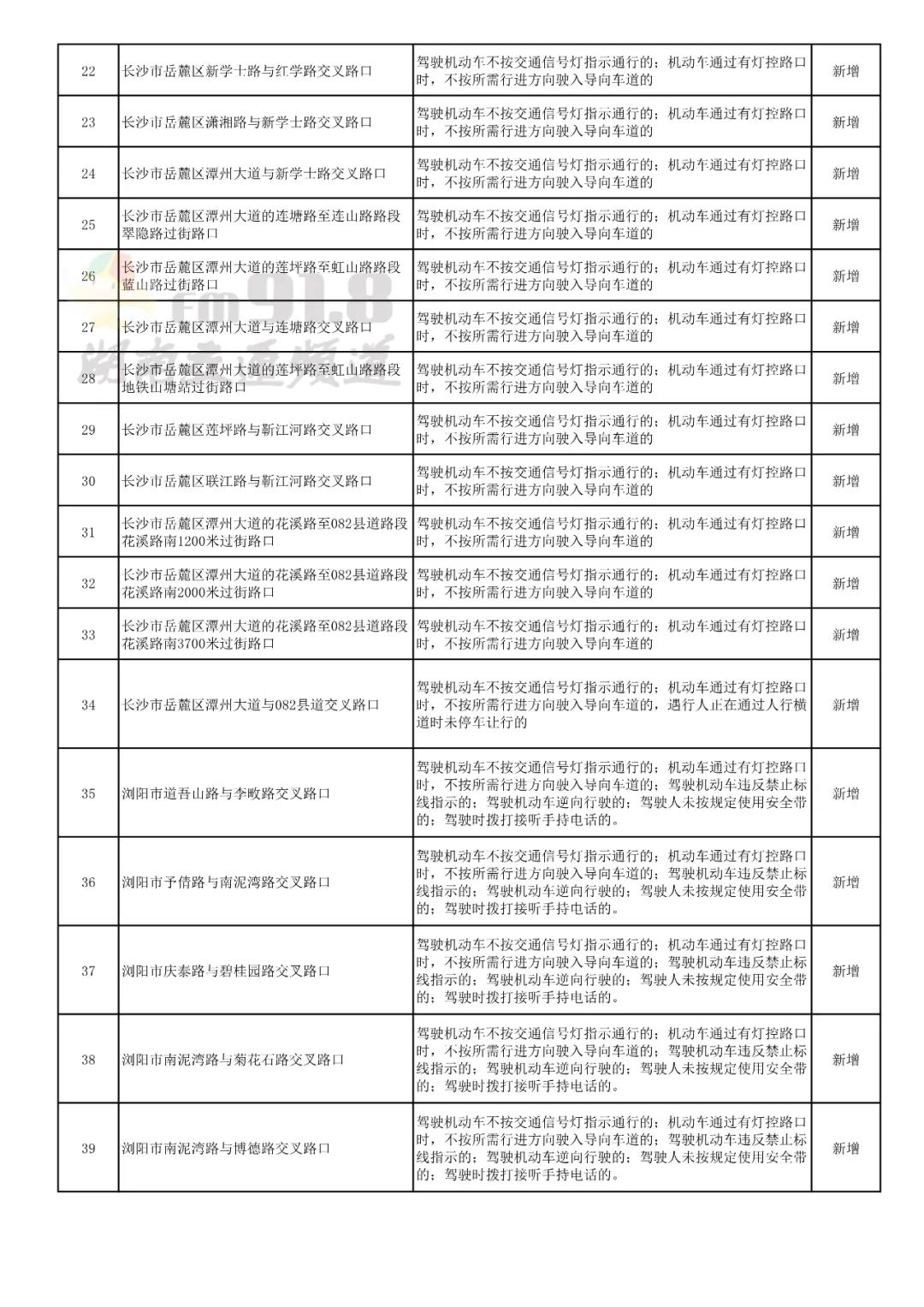 为确保道路交通安全、畅通、有序,根据道路通行情况,长沙市公安局交通警察支队在长沙市岳麓区莲坪路与潇湘景观道交叉路口等路口路段新增交通技术监控设备,将重点抓拍驾驶机动车不按交通信号灯指示通行的;机动车通过有灯控路口时,不按所需行进方向驶入导向车道的等交通违法行为,请遵守道路交通安全法律法规,文明出行。
