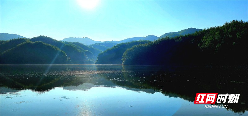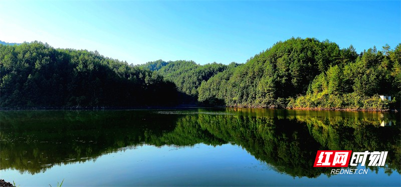 红网时刻新闻8月8日讯(通讯员 朱忠达 郭应华)位于汝城县土桥镇迳口村后山处的横洞水库,丛林轻柔,清波荡漾,四周青山环绕,风光如画,水清如镜。当山色倒映在湖水中,仿佛感觉山与水连接于一体,有如世外桃源一般。