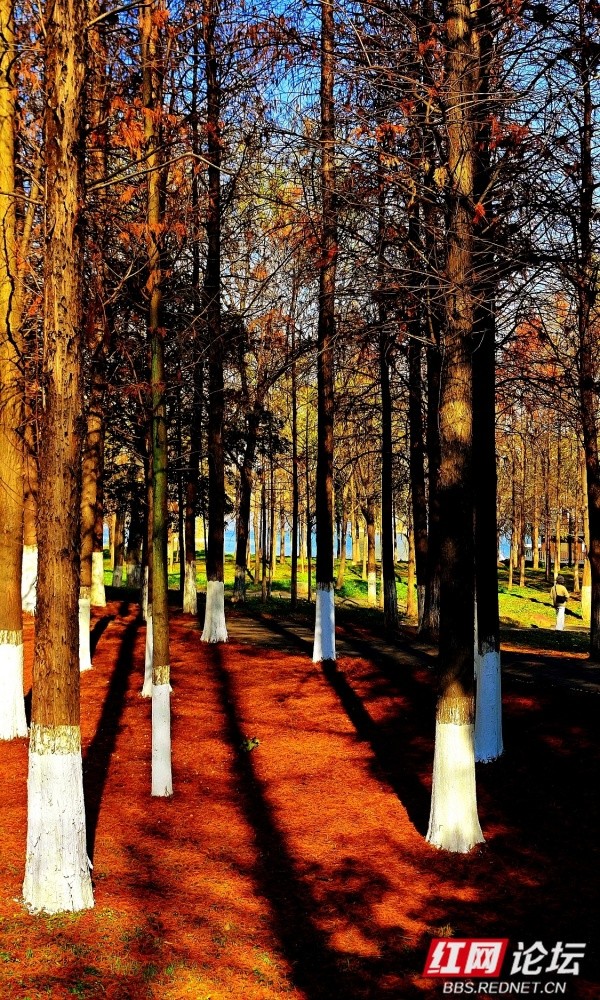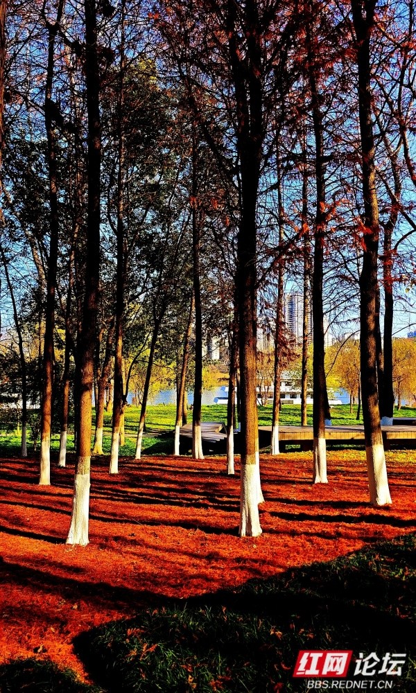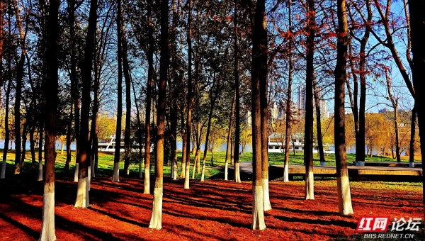 深冬时节,株洲市湘江风光带的钢琴广场一带,呈现出静谧而温暖的景致。放眼望去,江边水杉林已褪去翠绿,枝叶染上橙红与赭黄,随风飘落的叶片在步道上铺成松软的“自然地毯”。笔直的水杉树干被涂白防虫,与暖色调落叶形成鲜明对比;湘江水面微波粼粼,倒映着岸边林影与天空光色,阳光从枝叶间洒下,在步道上投落斑驳光影。远处偶有市民悠闲散步的身影,与冬日江景、红杉林共同勾勒出一幅和谐画面。这片滨水空间既延续了自然四季的流转之美,也始终保持着为城市居民提供的宜居与惬意。