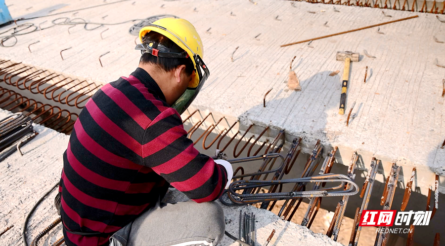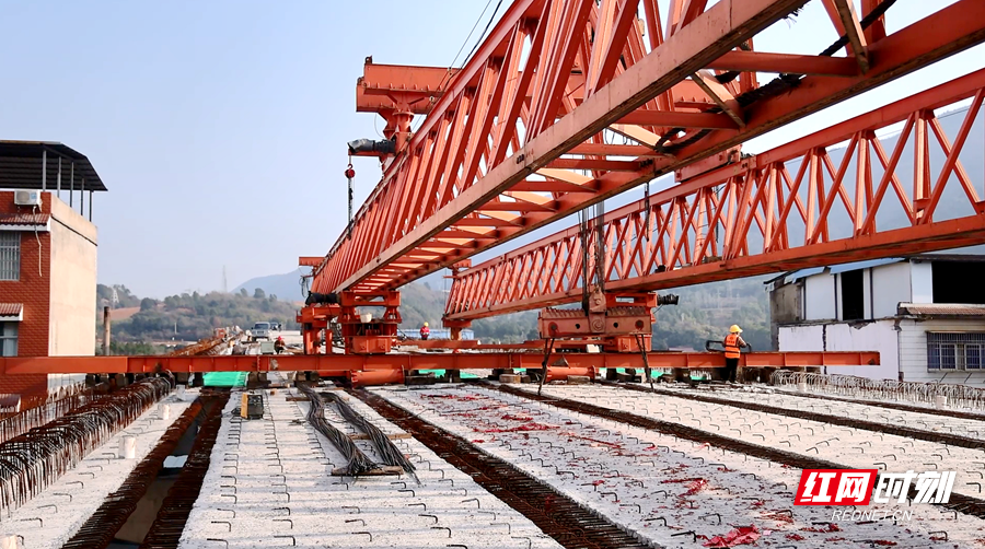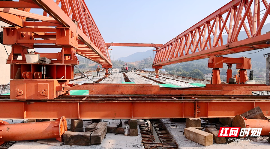 S343双牌县漯屋至何家洞一期工程项目,起点位于河东漯屋片区,线路全长2.116公里,设双向四车道。工程以路基市政与桥梁建设为核心,其中桥梁工程涵盖潇水二桥、谢山里大桥及油茶桥,桥梁段全长0.977公里。作为项目关键控制性工程,潇水二桥上跨现有永水路(G207线)形成立体交叉,最终经回旋绕行路线与永水路平面衔接,桥梁全长576米、宽度18.5米,设计时速40公里,桥面采用沥青砼路面,兼具通行安全性与舒适性。记者在潇水二桥贯通现场看到,桥面主体架构已然成型,后续施工正有序进行。
