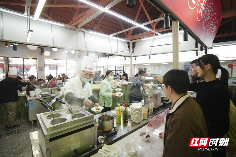 一年前,这里还是长沙弹簧厂闲置的旧厂房,光线昏暗,少有人至。如今,“湘供集市”的招牌挂了起来,机器的轰鸣声早已消散,取而代之的是碗筷轻碰声、邻里说笑声、孩子玩闹声。