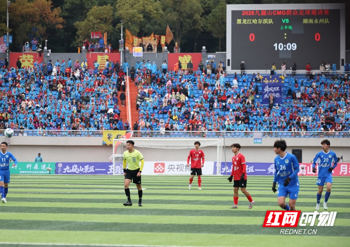 红网时刻新闻1月20日讯(记者 陈杰)1月20日下午,在永州市体育场举行的2026CMG群众足球邀请赛迎来一场焦点之战,最终,湖南永州队5-0大胜黑龙江哈尔滨队。